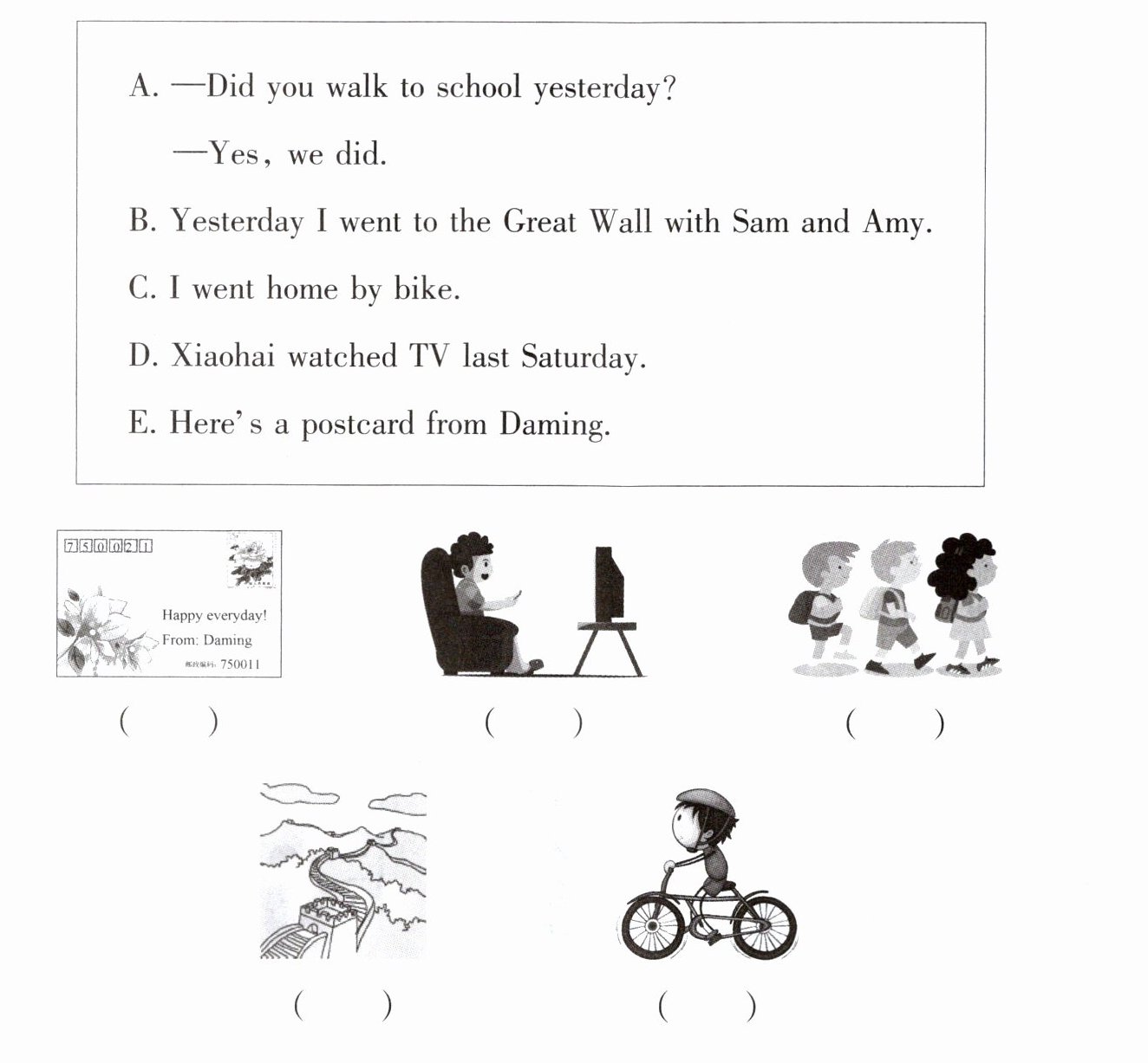 Ⅱ. 选择与图片提示相符的对话式句子,将序号填入括号内。