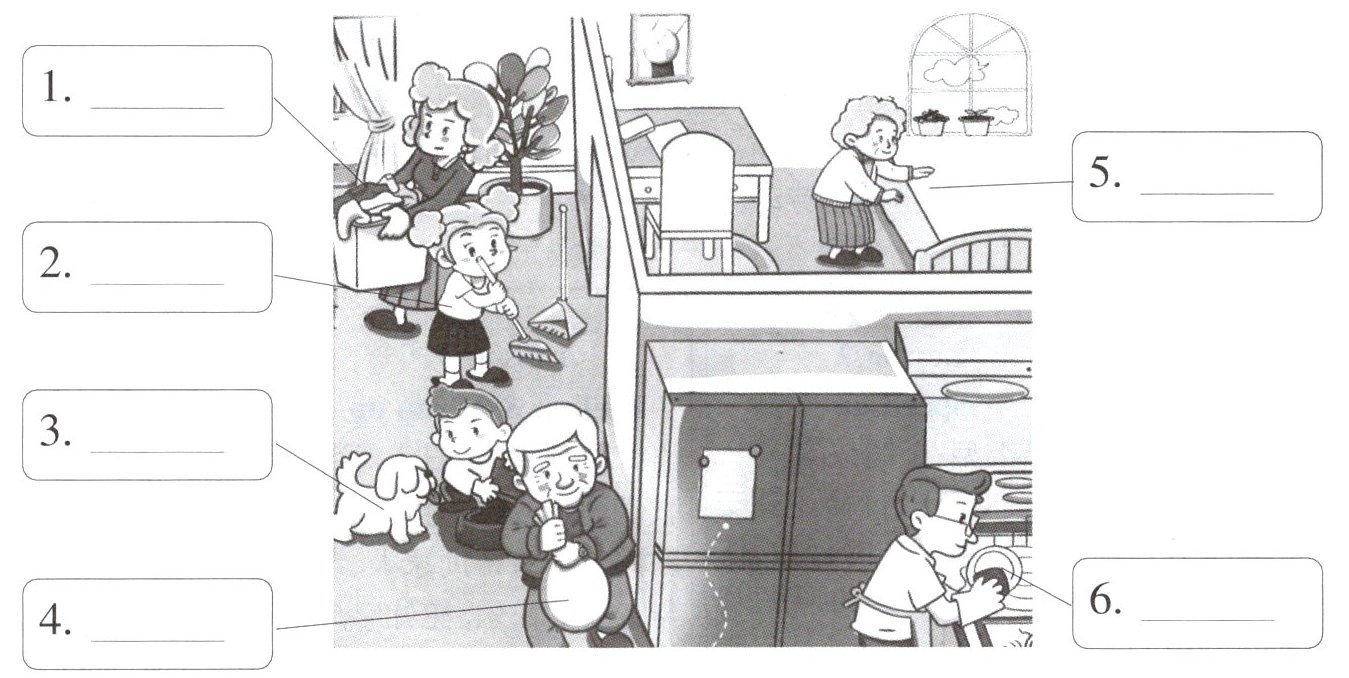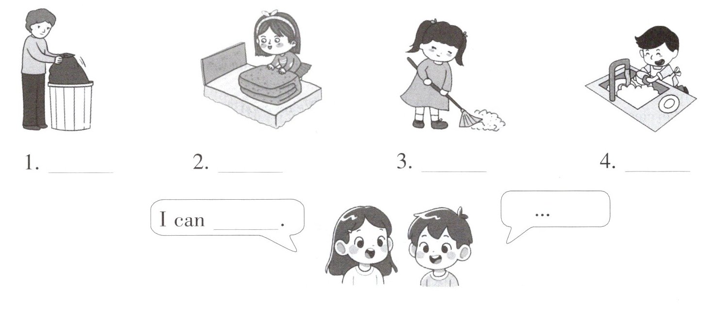 Ⅱ. Look, choose and talk. (先为图片匹配合适的句子,再和同桌聊一聊你们会做的家务活。)