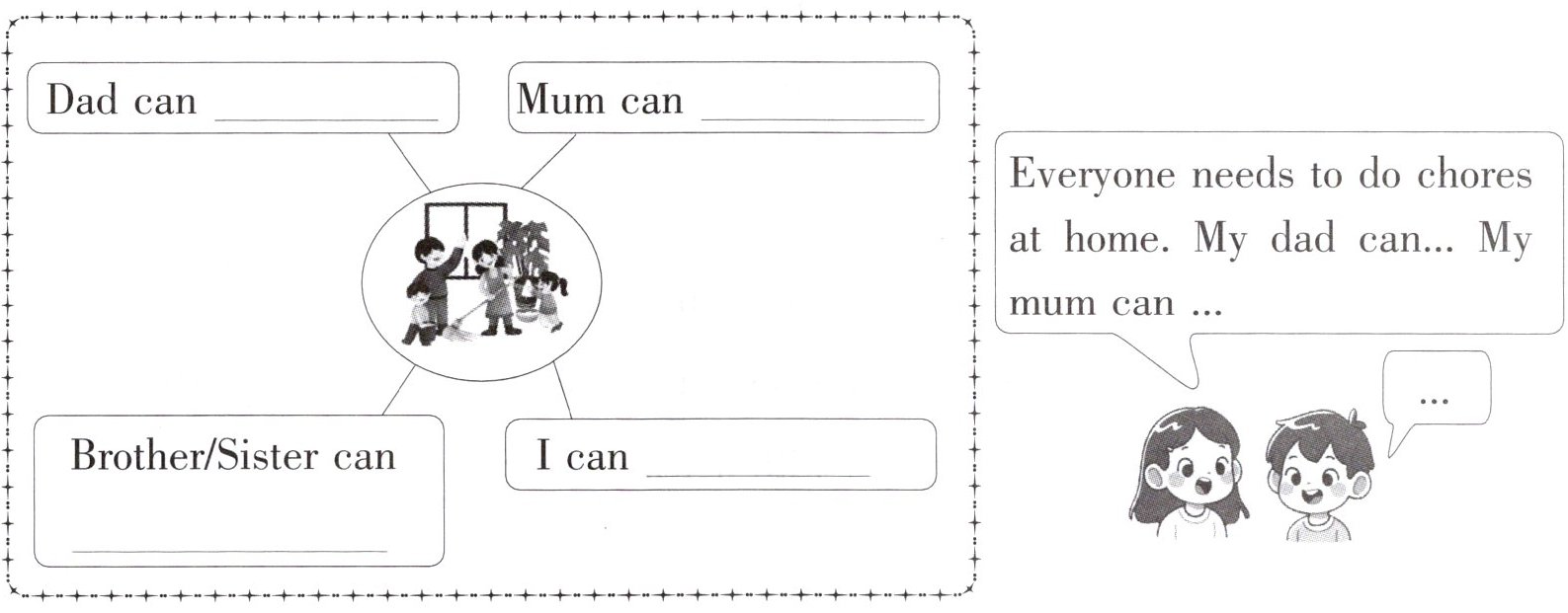 Ⅳ. Complete and discuss. (根据你家的实际情况设计家务分工思维导图,并与同伴分享。)