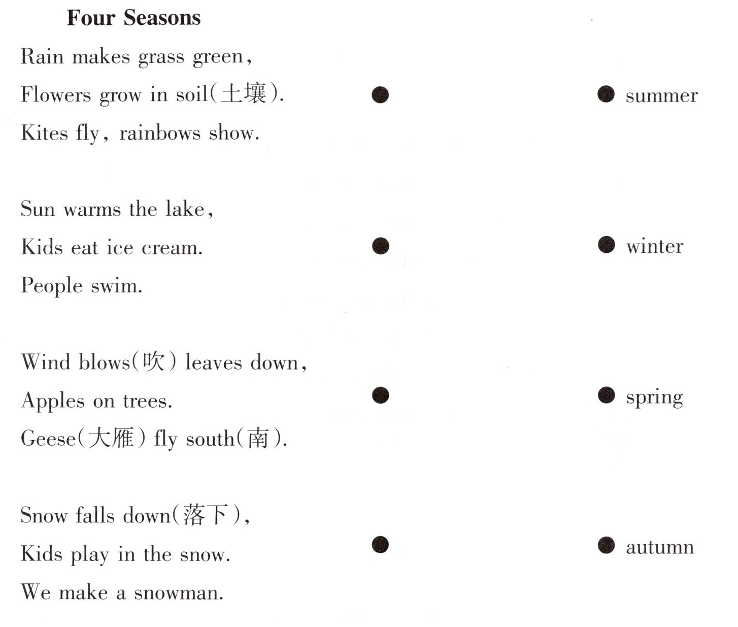 Ⅲ. Read and match. (阅读小诗,将季节和每段诗文连线。)
