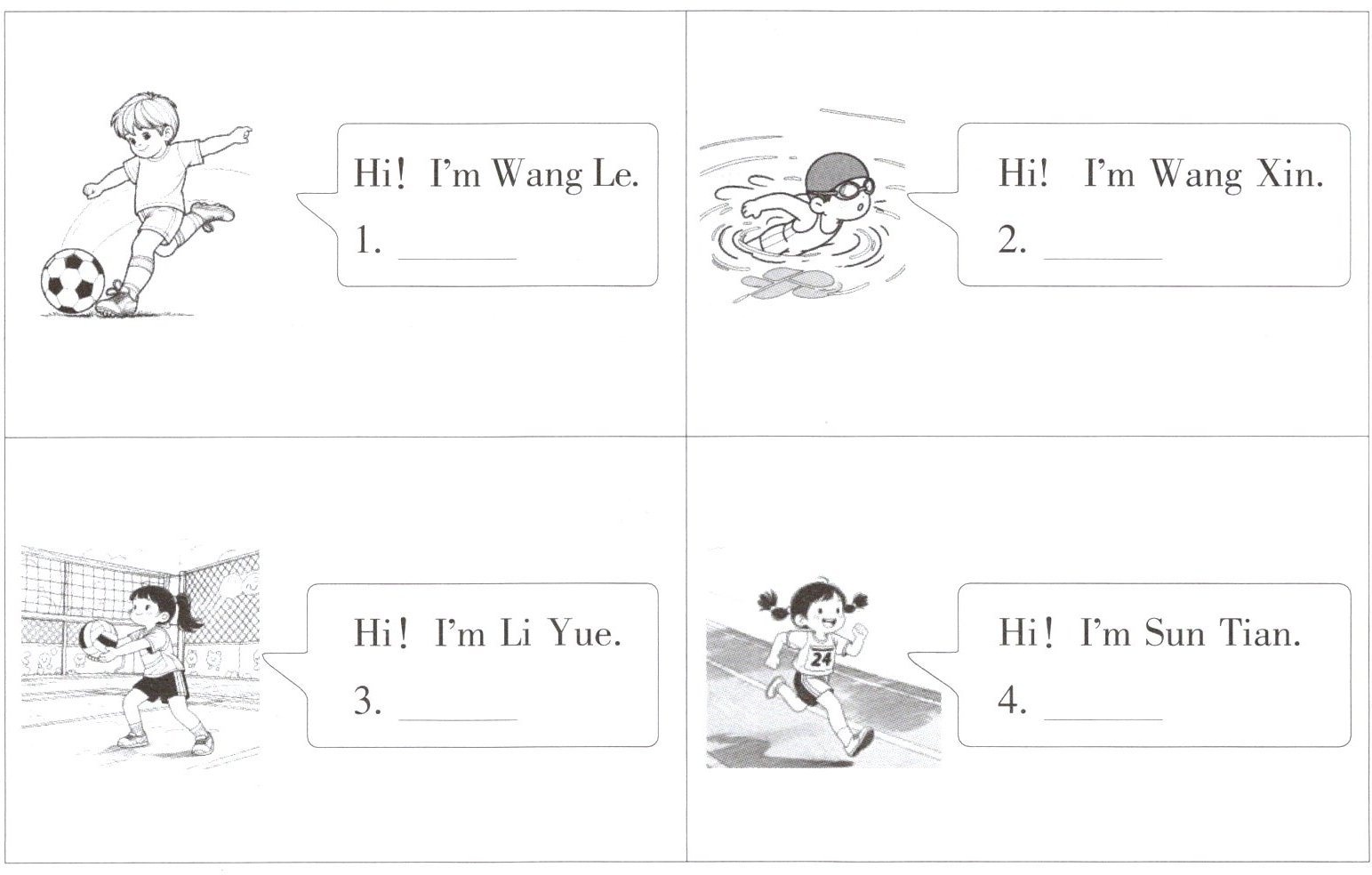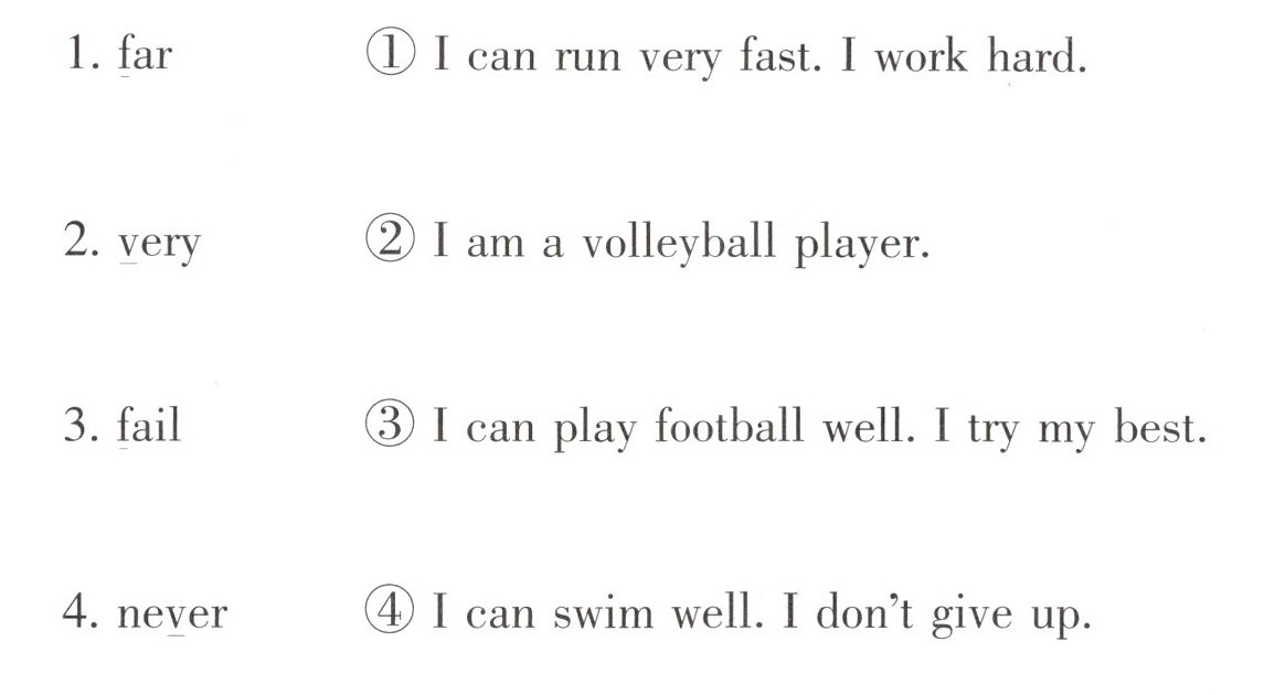 1. fast D 2. volleyball C 3. football A 4. give B
