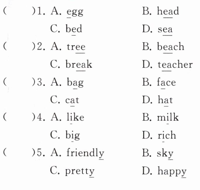 Ⅲ. 从每组单词中选出画线部分发音与其他三个不同的选项。