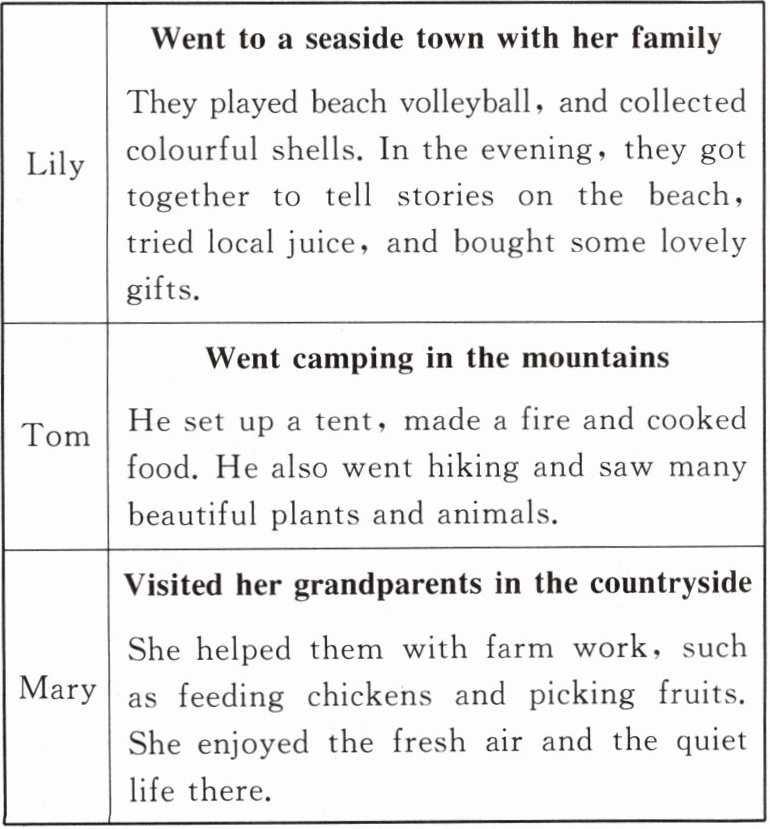 )4. The four people all ______ during their vacationsA. spent time outdoors