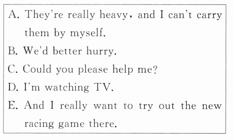 Please help me carry them.B: No problem. Let's carry them together. After that, can we go out to play? There's a new amusement park that just opened nearby. (4)