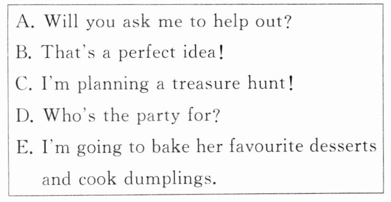 )A: It's Grandma's 70th birthday! She's feeling a little lonely nowadays, so I really want to hold a party that she'll never forget.