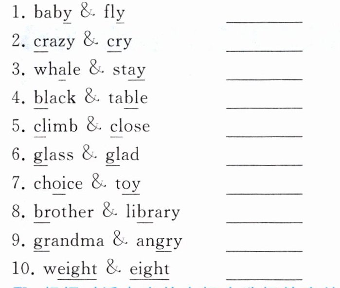 Ⅲ. 判断下列单词的画线部分读音,一致用 Y 表示(Yes),不同用 N 表示(No)。