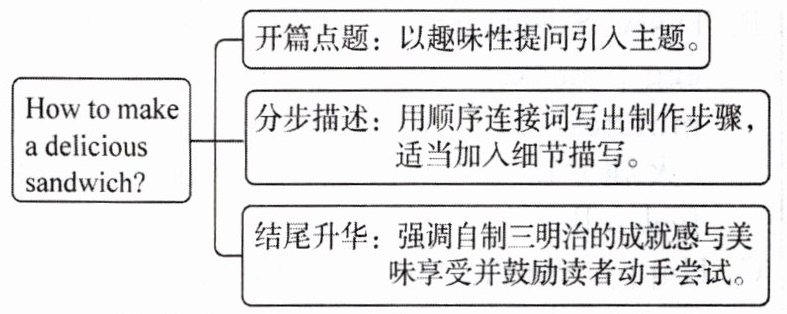同学们,美食总能给我们带来快乐!三明治作为既美味又便捷的食物深受大家喜爱。现在,请你化身“美食小导师”,写一篇英语作文,向大家介绍三明治的制作方法。