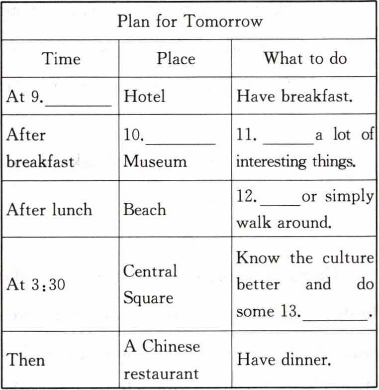 9.8/eight 10.Science 11.See 12.Swim 13.shopping