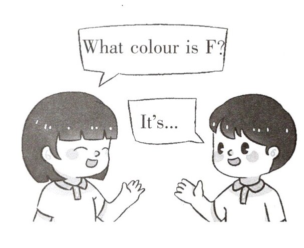 Ⅱ. Colour and talk. (将字母气球涂上你喜欢的颜色,并模仿下面两位小朋友进行问答。)