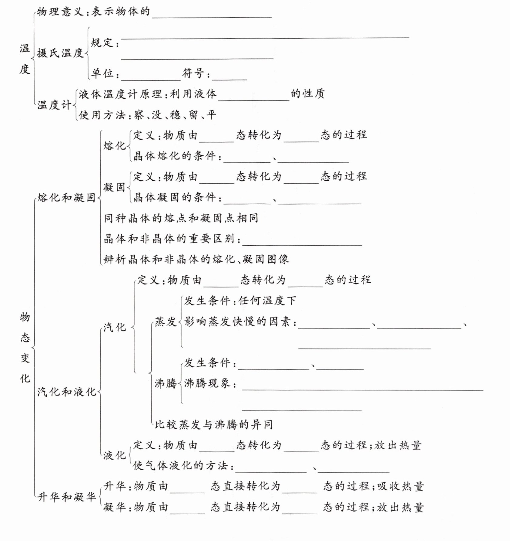 冰水混合物的温度为0摄氏度, 沸水的温度为100摄氏度 摄氏度 ℃ 热胀冷缩