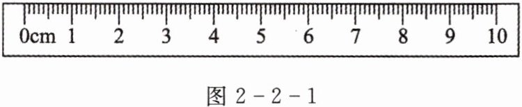 1. 小明利用如图 2 - 2 - 1 所示的刻度尺测量一个文具盒的宽度,三次测量的数据分别为 9.20 cm、9.20 cm、9.19 cm,该同学所用刻度尺的分度值为