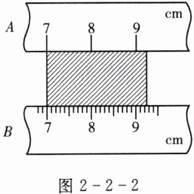 3. 如图 2 - 2 - 2 所示,用两把刻度尺 $ A $ 和 $ B $ 测同一物体的长度,其中 $ A $ 刻度尺的分度值是