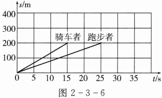 14. 如图$2-3-6$是一个骑自行车的人与一个跑步的人运动时的路程随时间变化的图像。