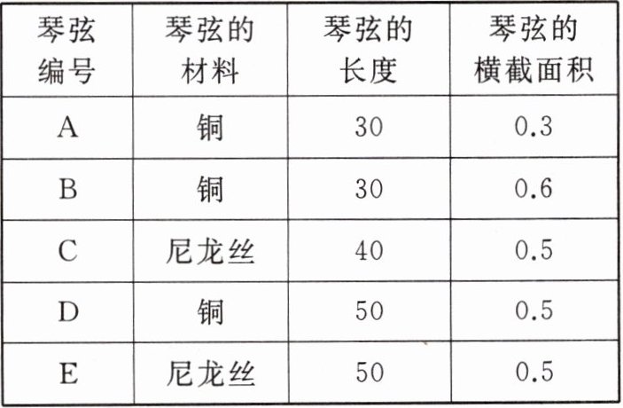 11. 丽娜同学在观察小提琴、二胡等乐器的弦的振动情况时猜测:即使在弦张紧程度相同的条件下,发声的音调高低还可能与弦的粗细、长短及材料有关。于是丽娜找来了各种不同的琴弦,想通过实验进行探究,琴弦的编号及情况如下表。
