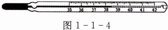 10. 监测肺炎等呼吸系统传染病时要测量体温。若用如图1-1-4所示这支未用过的体温计去测量另一个人的体温,测量结果可能是(