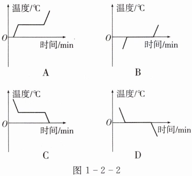 9. 炎热的夏天,从冰箱冷冻室中取出一些冰块放入可乐杯中。经过一段较长时间后,杯中的冰块全部变成了液态。图$1 - 2 - 2$中能正确反映冰块物态变化过程的是(