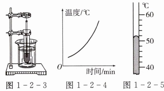 (选填“冰”或“蜡”)的温度随时间变化的图像。图$1 - 2 - 5$所示温度计显示的是蜡某时刻的温度,它的示数是52