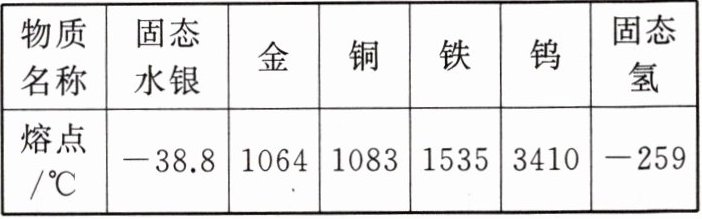 11. 表中列出几种物质的熔点(在标准大气压下),据此判断以下说法中正确的是(