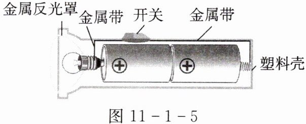 8. 如图 11 - 1 - 5 所示是某种手电筒的剖面图,请按照实物剖面图,在虚线框中画出这种手电筒的电路图。