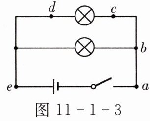 6. 如图 11 - 1 - 3 所示的电路中,用导线连接两点后,会导致电路短路的是(
