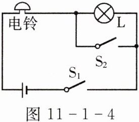 7. 如图 11 - 1 - 4 所示的电路,闭合开关 $S_{1}$和 $S_{2}$后,下列分析正确的是(