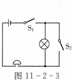 3. 在如图11-2-3所示的电路中,不论开关如何切换,电铃和灯泡都能安全使用。若想让灯泡和电铃同时工作,需要闭合开关