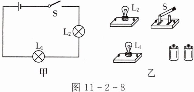 9. 按照如图11-2-8甲所示的电路图,用笔画线代替导线,连接实物图11-2-8乙。(导线不允许交叉)