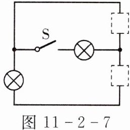 8. 请在图11-2-7中的两个虚线框内,选填“电源”和“开关”的符号,并满足当开关都闭合时两灯组成并联电路。