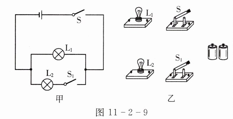 10. 按照如图11-2-9甲所示的电路图,用笔画线代替导线,连接实物图乙。(导线不允许交叉)
