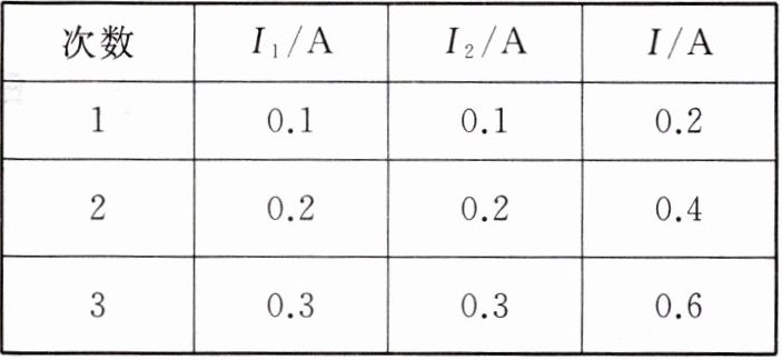 13. 小华同学在“探究并联电路电流规律”的实验时,根据图11 - 4 - 8甲连接好实物,用电流表分别测出I、$I_1、$$I_2$的电流,改换小灯泡的规格,重复实验,记录数据如下表。