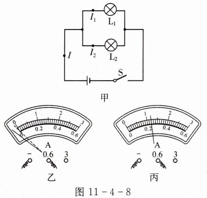 (2)排除故障后,为确定电流表量程,试触时看到如图11 - 4 - 8乙的实验现象,这是因为