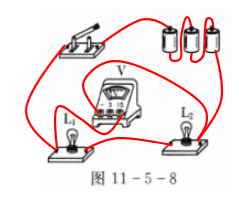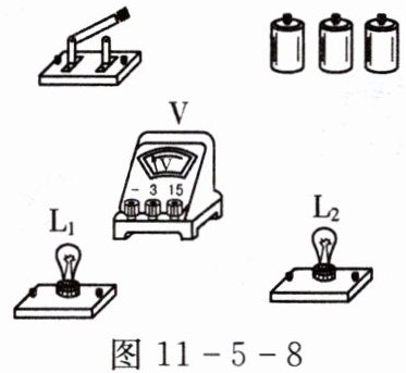 12. 小刚和小丽用如图 11 - 5 - 8 所示的器材探究串联电路的电压关系,用三节干电池串联后做电源,两只小灯泡的规格不同。
