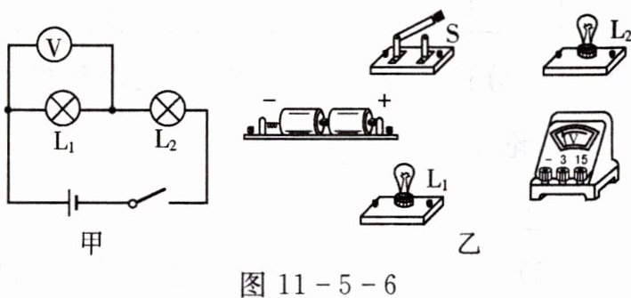 10. 按照图 11 - 5 - 6 甲所示的电路图,在乙图中用笔画线代替导线把各元件连接起来。(导线不允许交叉)