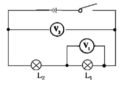 (1)请用笔画线代替导线,连接实验电路。要求:$L_1$和$ L_2$串联,电压表测量两灯串联后的总电压。