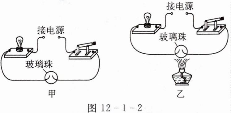 11. 如图 12 - 1 - 2 所示,在常温下闭合开关,发现灯泡不亮,如图甲,这说明常温下玻璃是