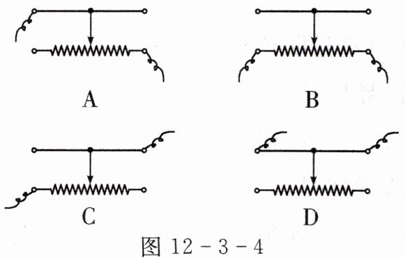 4. 如图 12 - 3 - 4,A、B、C、D 中所示的为滑动变阻器的结构和连入电路的情况示意图,当滑片向右滑动时,连入电路的电阻变小的为(