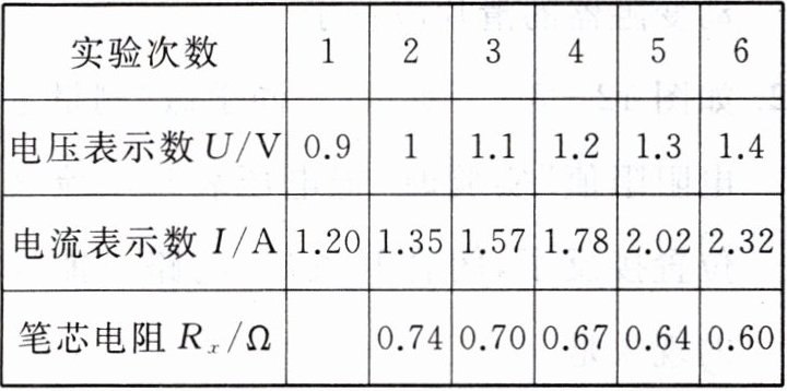 | $ 0.74 $ | $ 0.70 $ | $ 0.67 $ | $ 0.64 $ | $ 0.60 $ |(3)笔芯电阻变小的原因是