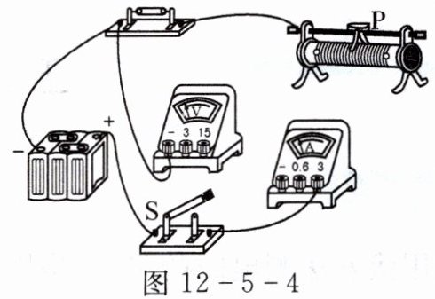 (1)为了测出铅笔笔芯 $ R_x $ 的阻值,请你用笔画线代替导线完成图 12 - 5 - 4 所示的实验电路的连接。