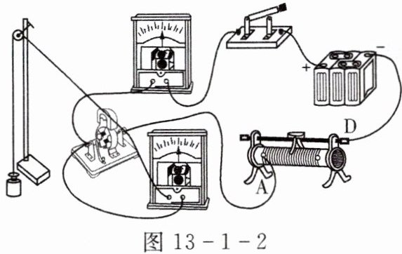 10. 在“探究电流做功的多少与哪些因素有关”的实验中,用电动机提起物体,如图13-1-2所示。