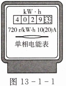 2. 小明家的电能表10月初的示数如图13-1-1所示,10月末时的示数为$4179.3kW\cdot h$,若民用电的价格为0.5元/$(kW\cdot h)$,则小明家10月份的电费应是
