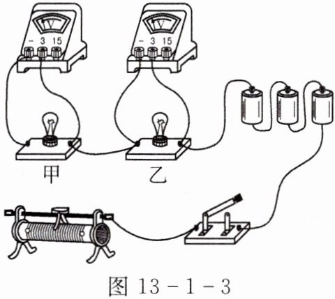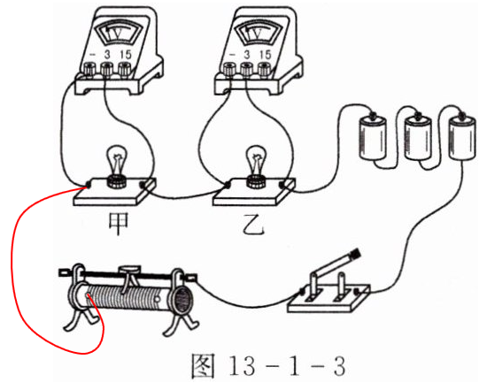 在图13-1-3中将甲乙两灯串联,目的是控制通电时间和