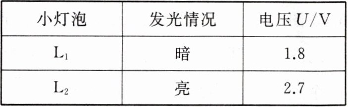 (2)两只灯泡标有$ L_1“2.5 V 0.3 A”$和$ L_2“3.8 V 0.3 A”,$一位同学用干电池做电源,连成如图 13 - 2 - 4 甲所示的电路,闭合开关进行实验,记录数据如下表: