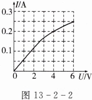 12. 标有“6 V 1.5 W”字样的小灯泡,通过它的电流随其两端电压变化的关系如图 13 - 2 - 2 所示,若把这样的三只灯泡串联起来,接在 12 V 的电源两端,每个灯泡的电阻及实际功率约为(
