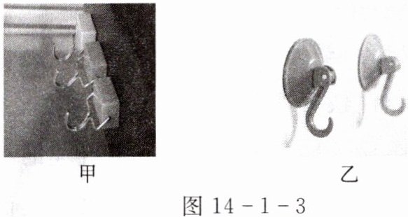 5. 如图 14 - 1 - 3 甲所示是小宝家冰箱上的吸盘挂钩,它是利用了物质的