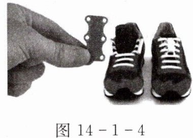 7. “磁性鞋带扣让你跟系鞋带说再见”。如图 14 - 1 - 4 所示,把鞋带裁剪到合适的长度,然后将模块穿进去,之后两边一碰即可牢牢地把鞋带系紧。下列说法正确的是(