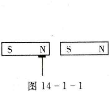 3. 如图 14 - 1 - 1 所示,一根较重的铁钉吸附在水平放置的条形磁铁 N 极,当另一根同样的磁铁的 S 极与原来磁铁的 N 极合并后,铁钉将会