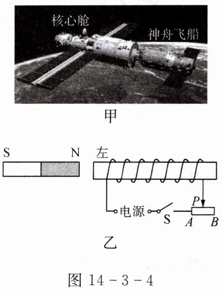 的。当货运飞船和核心舱相互靠近时,设计如图乙所示的缓冲装置简化图。当条形磁体和通电螺线管靠近时,产生相互排斥的力,电源右端为______负