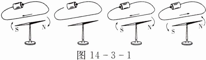 2. 如图 14 - 3 - 1 所示,比较图中实验,可以得出结论是:通电导线周围存在