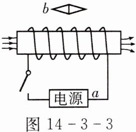 4. 如图 14 - 3 - 3 所示,根据磁感线方向,可以判断:电源的 a 端为