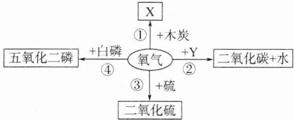 8. 小明是个善于思考和总结的学生,他在学习了氧气的性质后,发现氧气能与许多物质发生反应,整理得到如图所示框架图(部分反应条件已略去)。